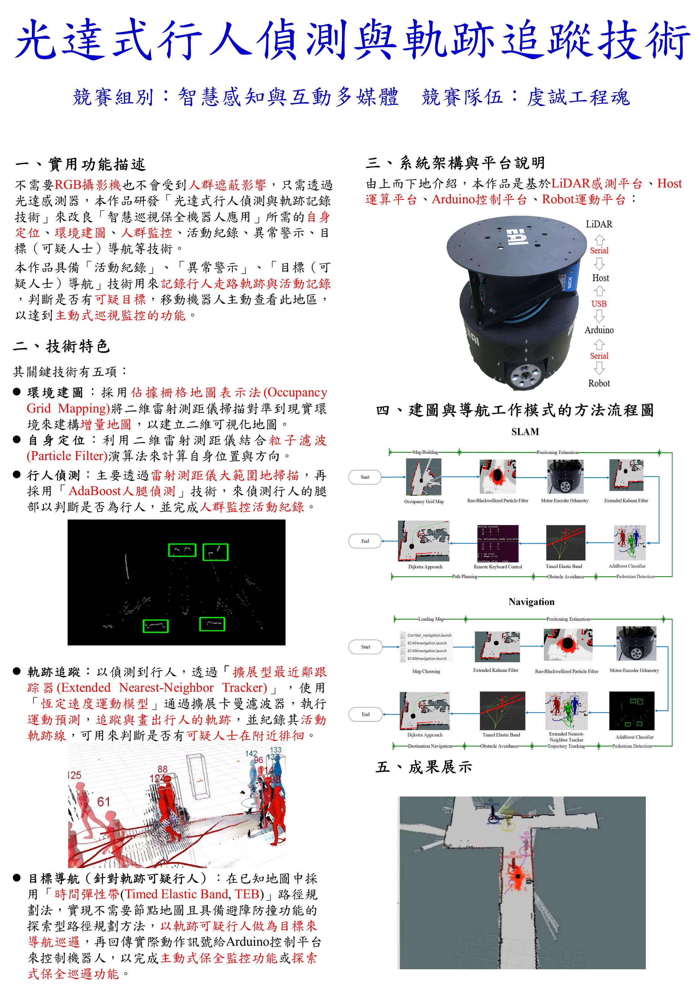 基於型態學擴展跳躍距離分群分割法的光達式行人偵測與軌跡追蹤技術及其智慧巡視保全機器人應用 |