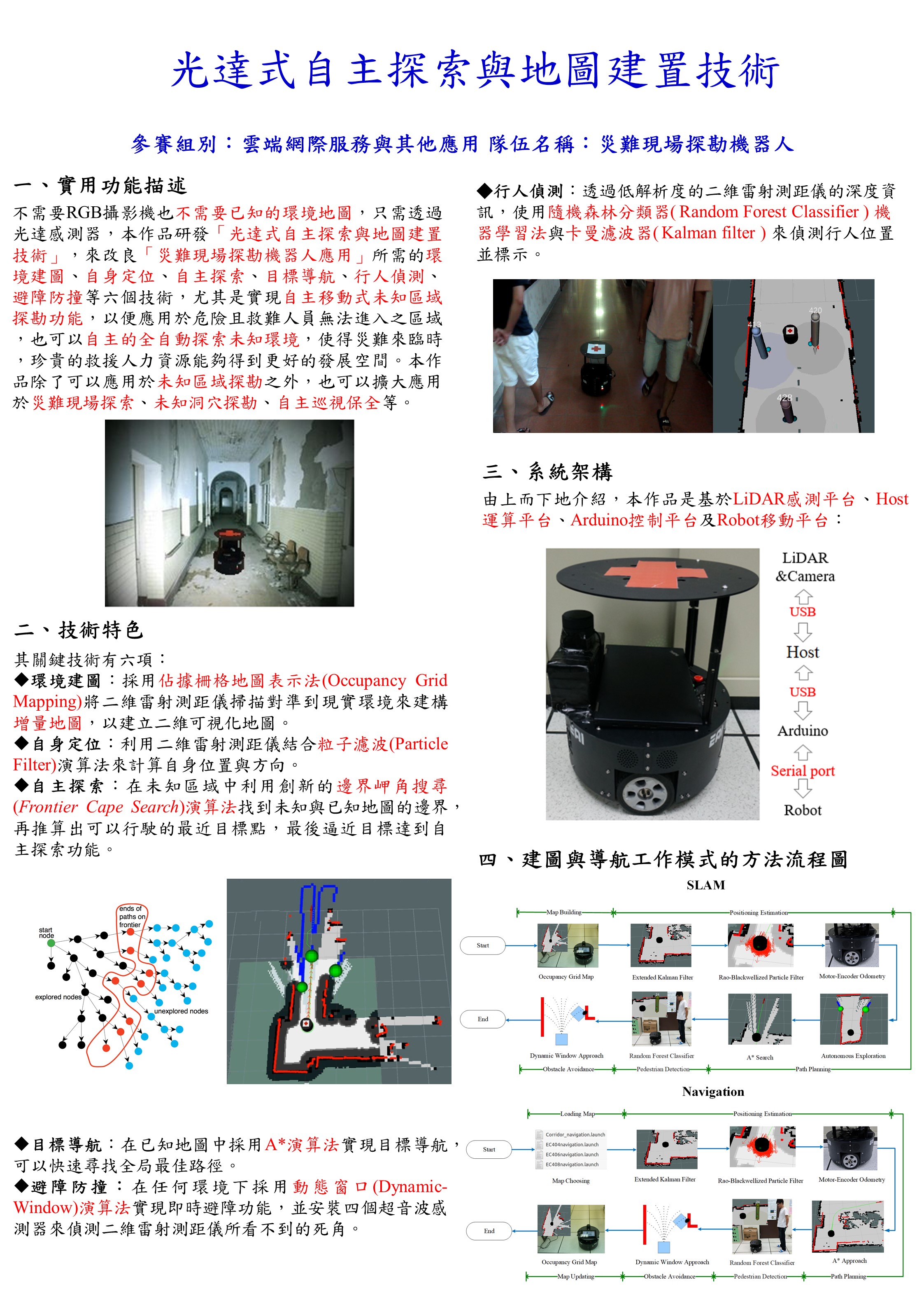 基於邊界岬角搜尋方法的光達式自主探索與地圖建置技術及其坍塌搜救機器人應用 |