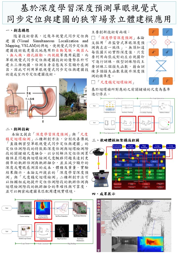 基於深度學習深度預測單眼視覺式同步定位與建圖的狹窄場景立體建模應用 |