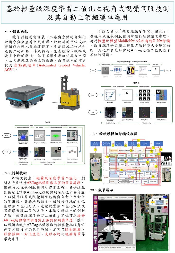 基於輕量級深度學習二值化之視角式視覺伺服技術及其自動上架搬運車應用 |
