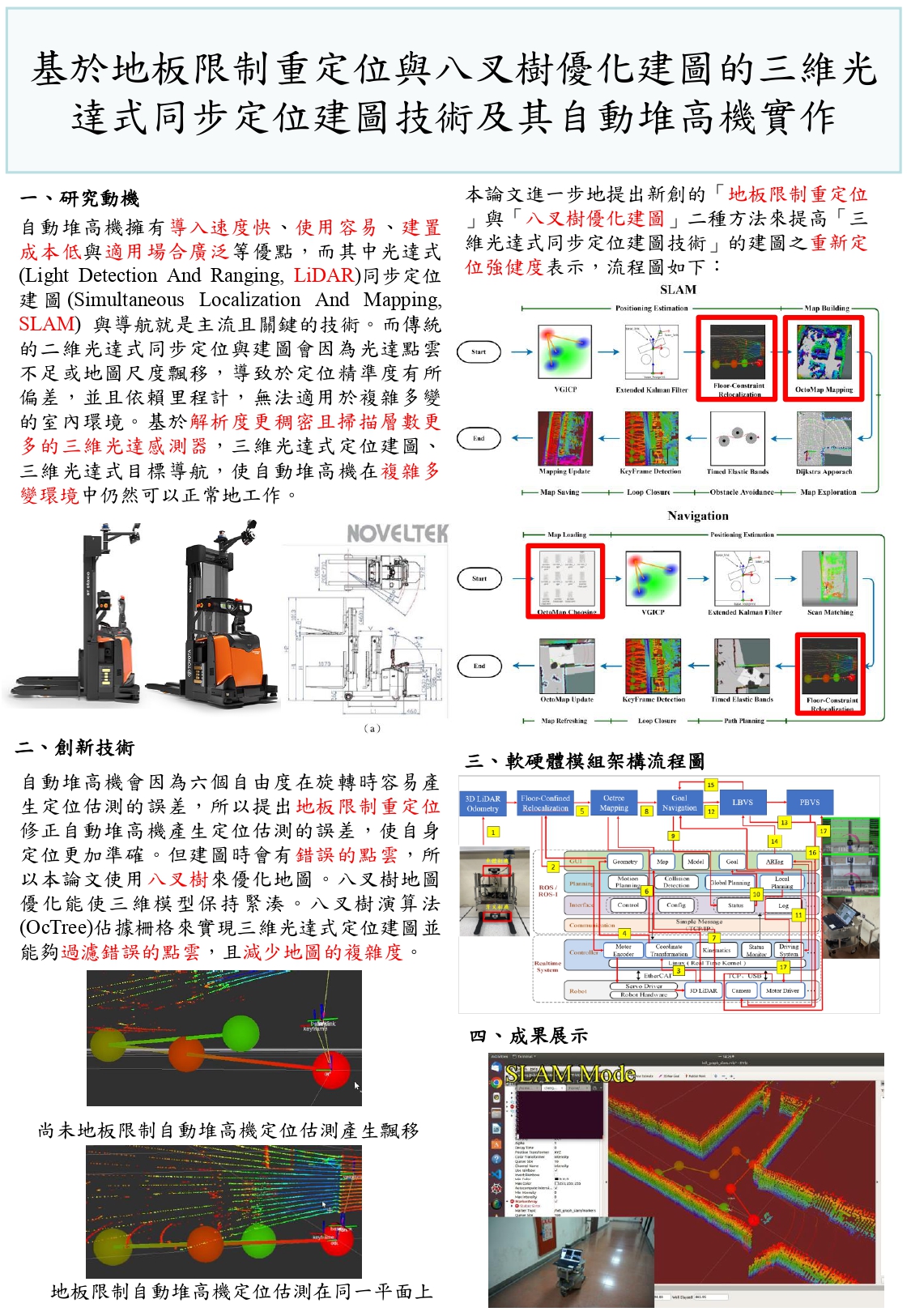 基於地板限制重定位與八叉樹優化建圖的三維光達式同步定位建圖技術及其自動堆高機實作 |