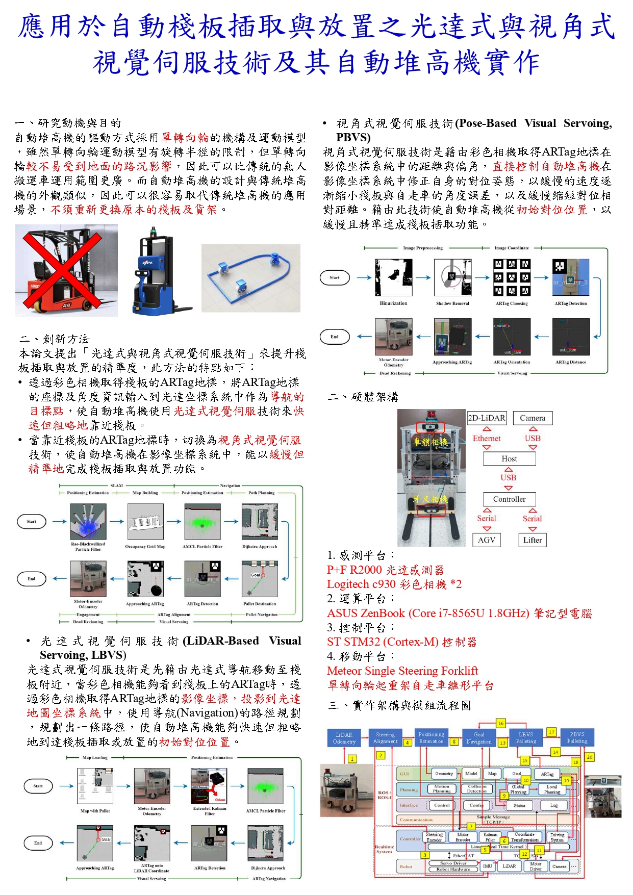 應用於自動棧板插取與放置之光達式與視角式視覺伺服技術及其自動堆高機實作 |