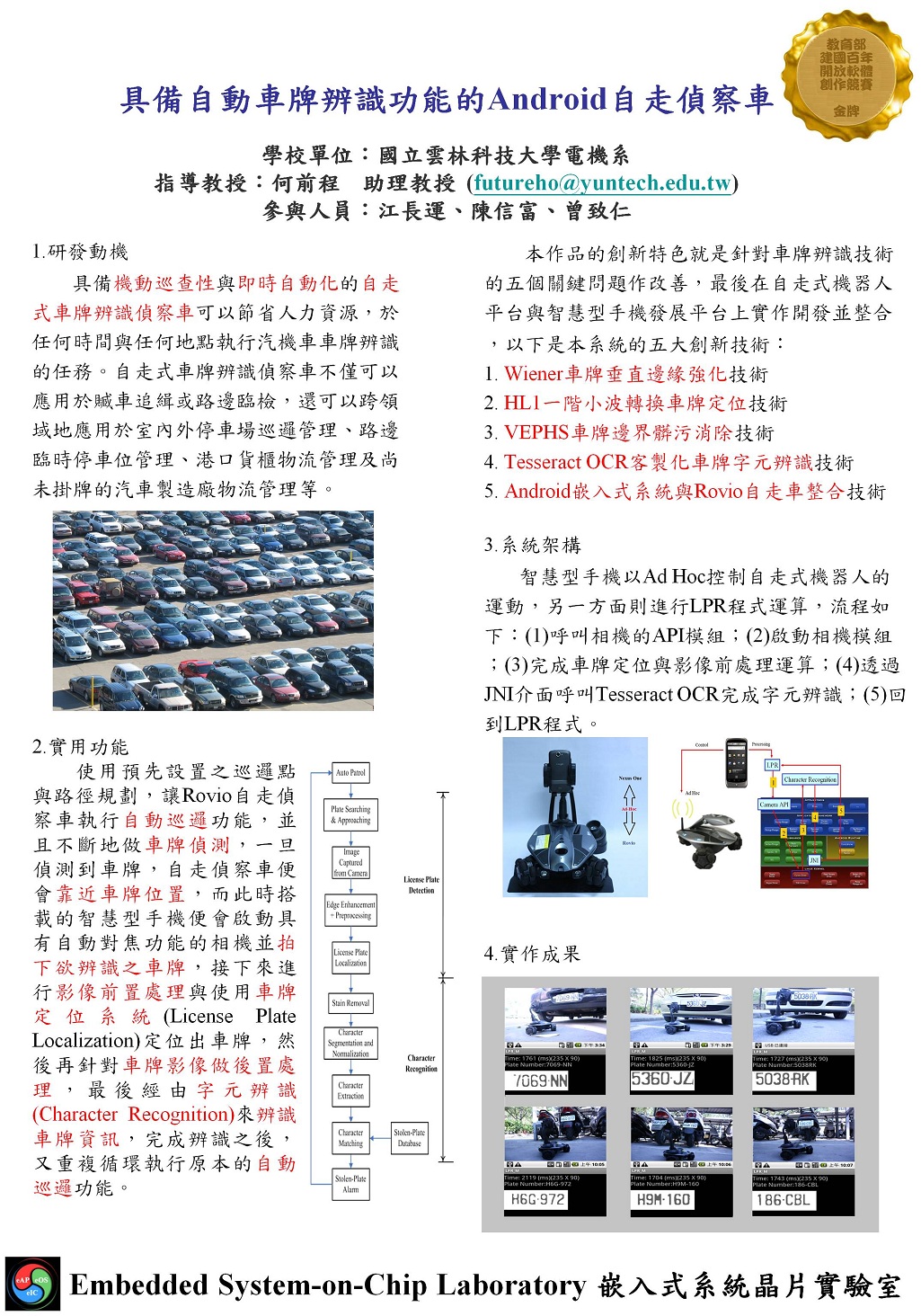 嵌入式系統晶片實驗室之研發成果