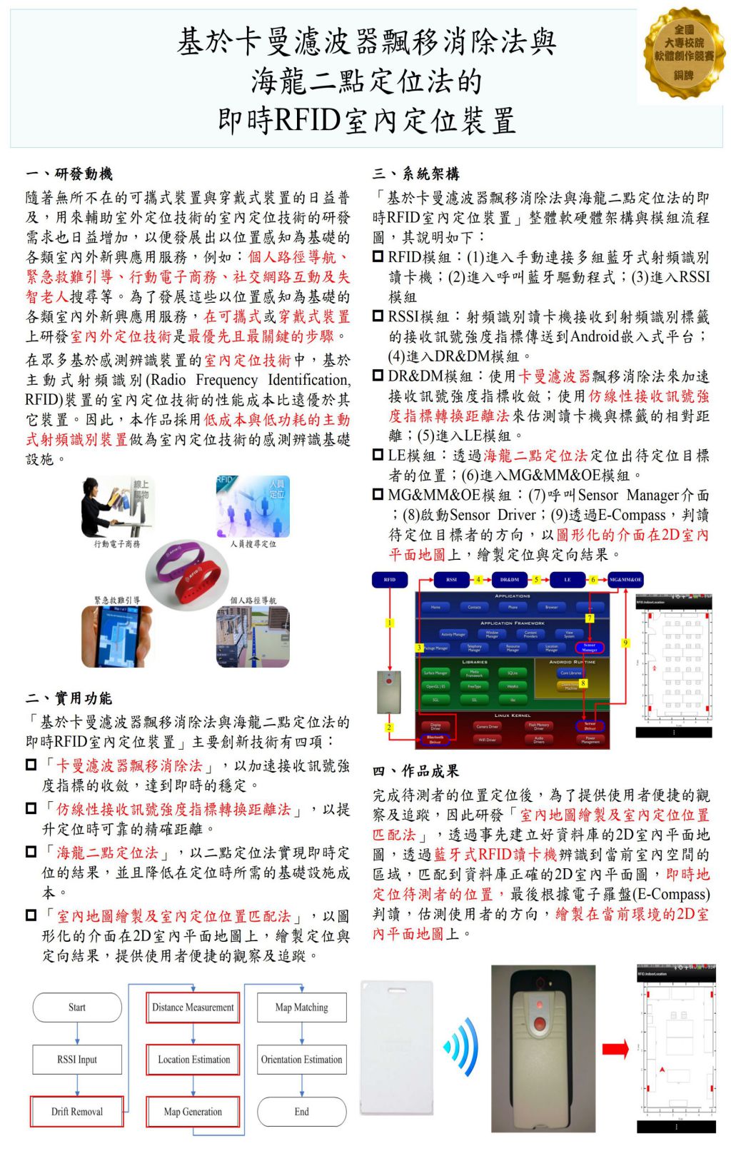 基於卡曼濾波器飄移消除法與海龍二點定位法的即時RFID室內定位裝置 |