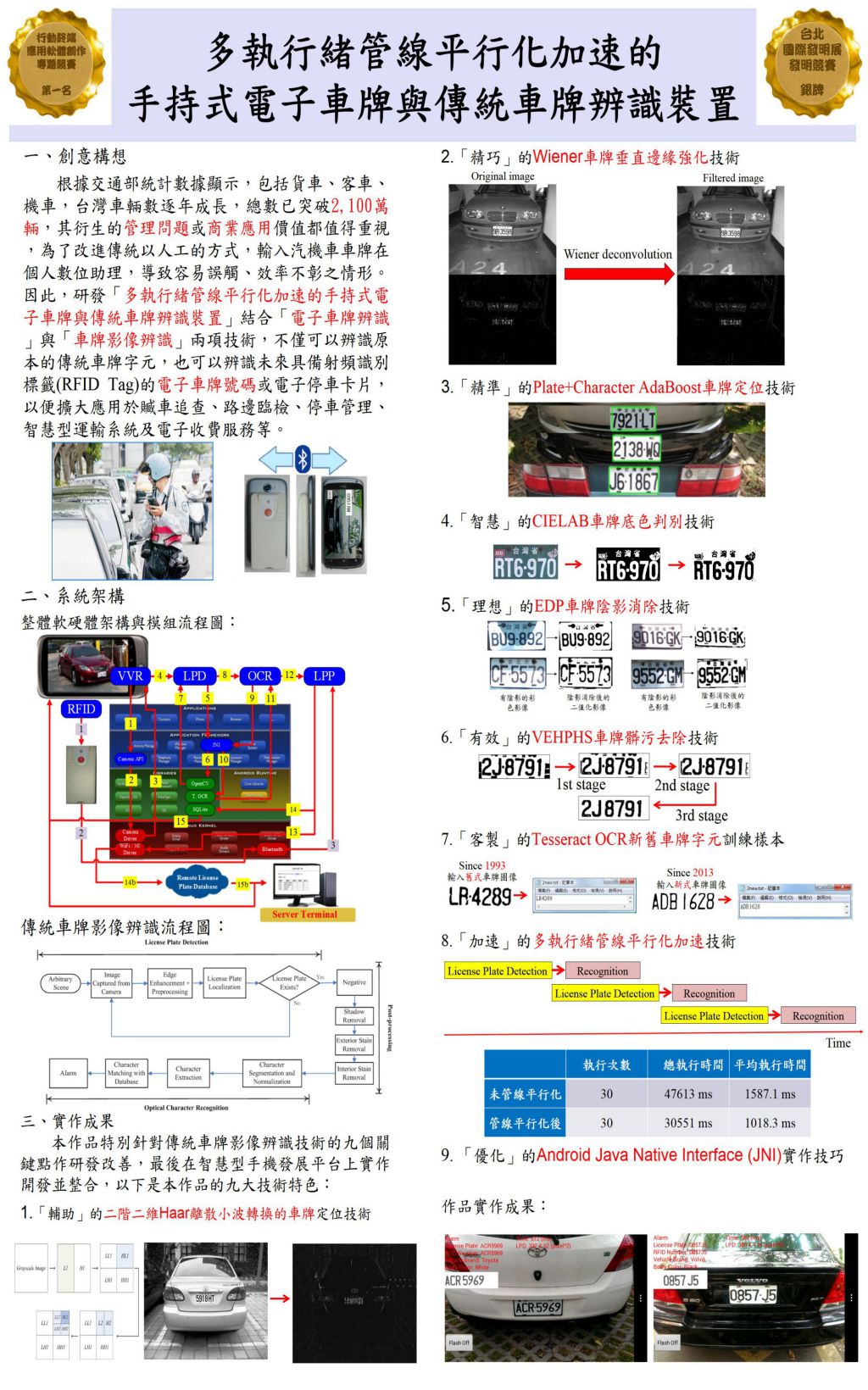 多執行緒管線平行化加速的手持式電子車牌與傳統車牌辨識裝置 |