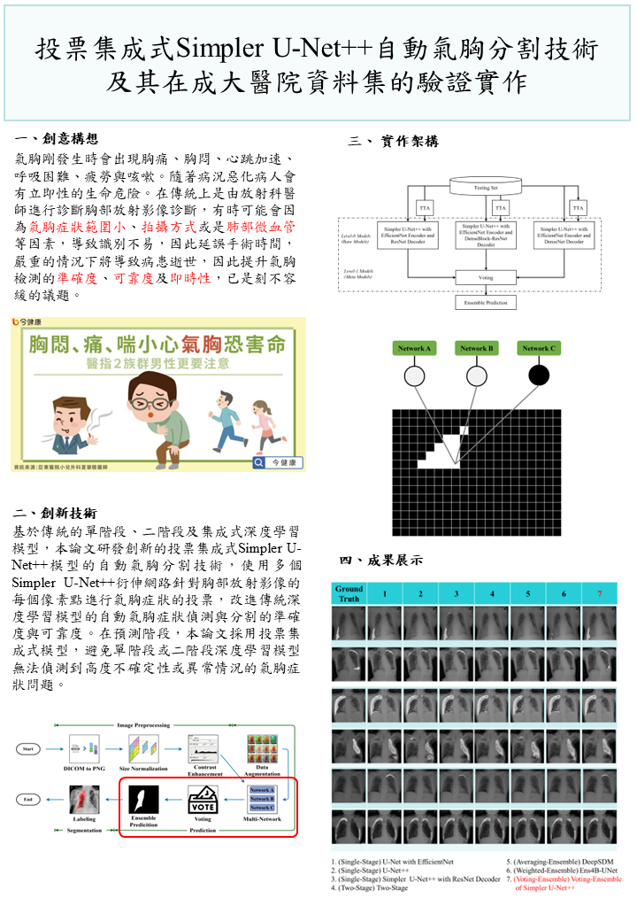 投票集成式Simpler U-Net++自動氣胸分割技術及其在成大醫院資料集的驗證實作 |