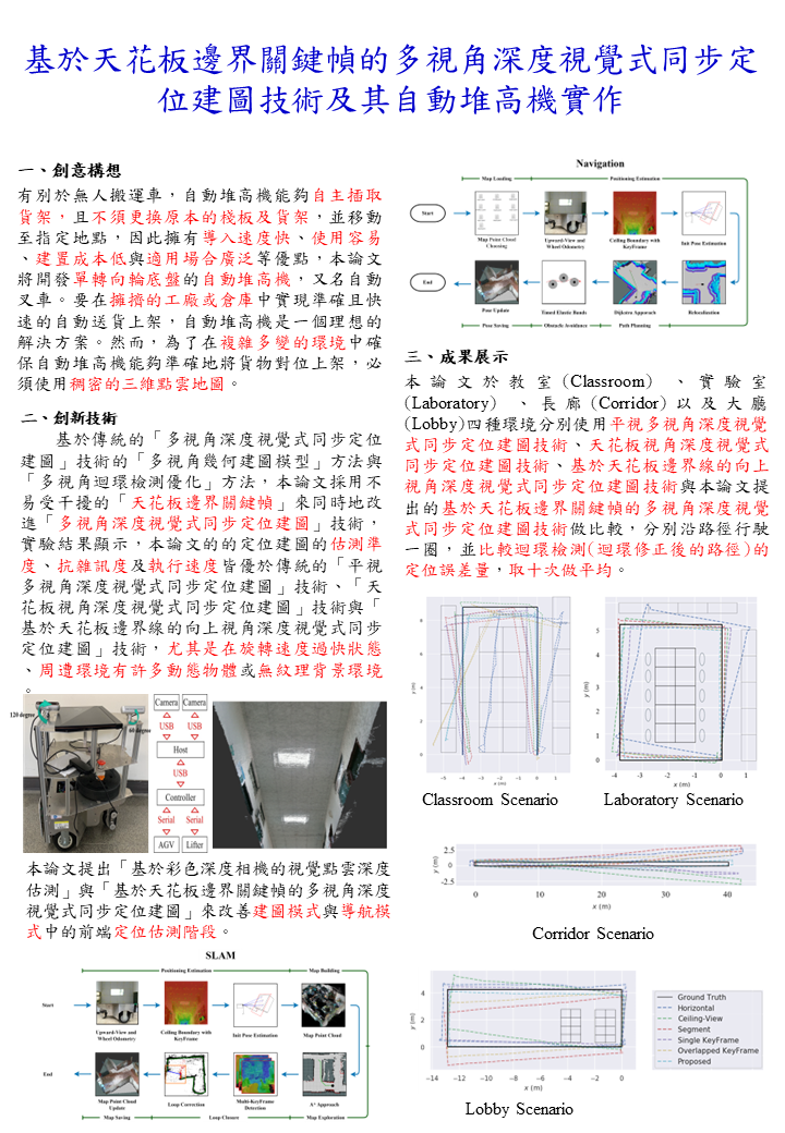 基於天花板邊界關鍵幀的多視角深度視覺式同步定位建圖技術及其自動堆高機實作 |