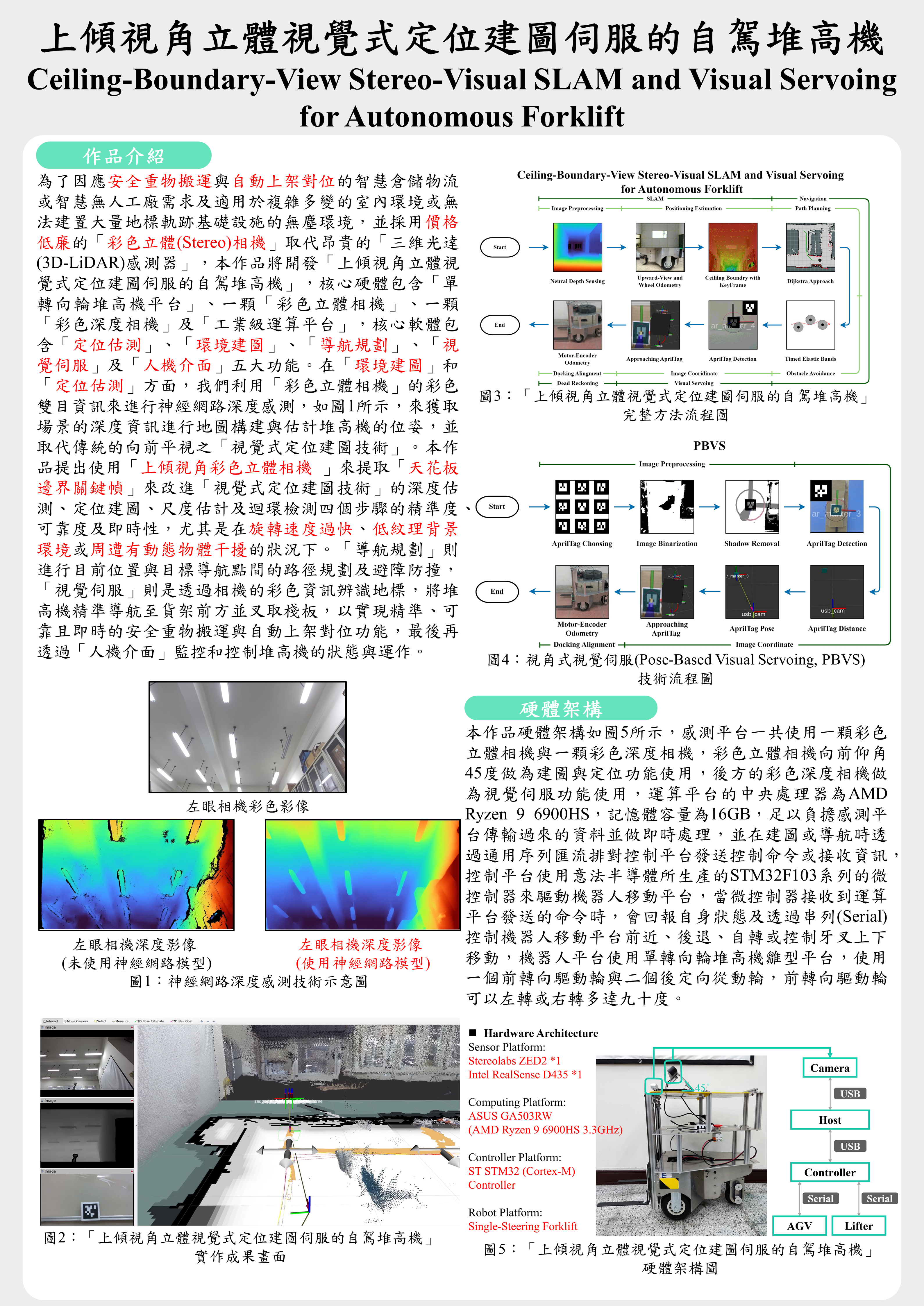 上傾視角立體視覺式定位建圖伺服的自駕堆高機 |