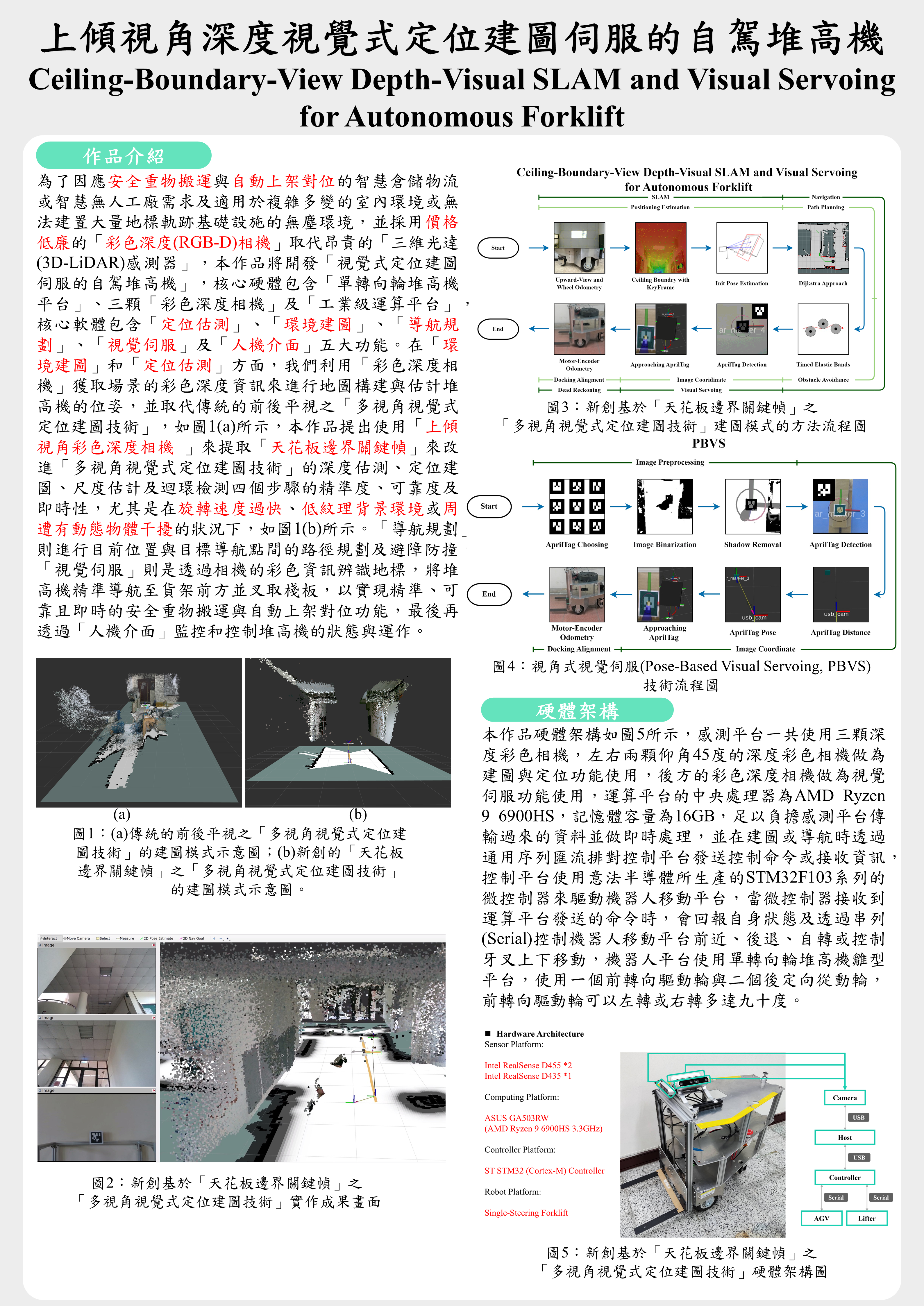 上傾視角深度視覺式定位建圖伺服的自駕堆高機 |