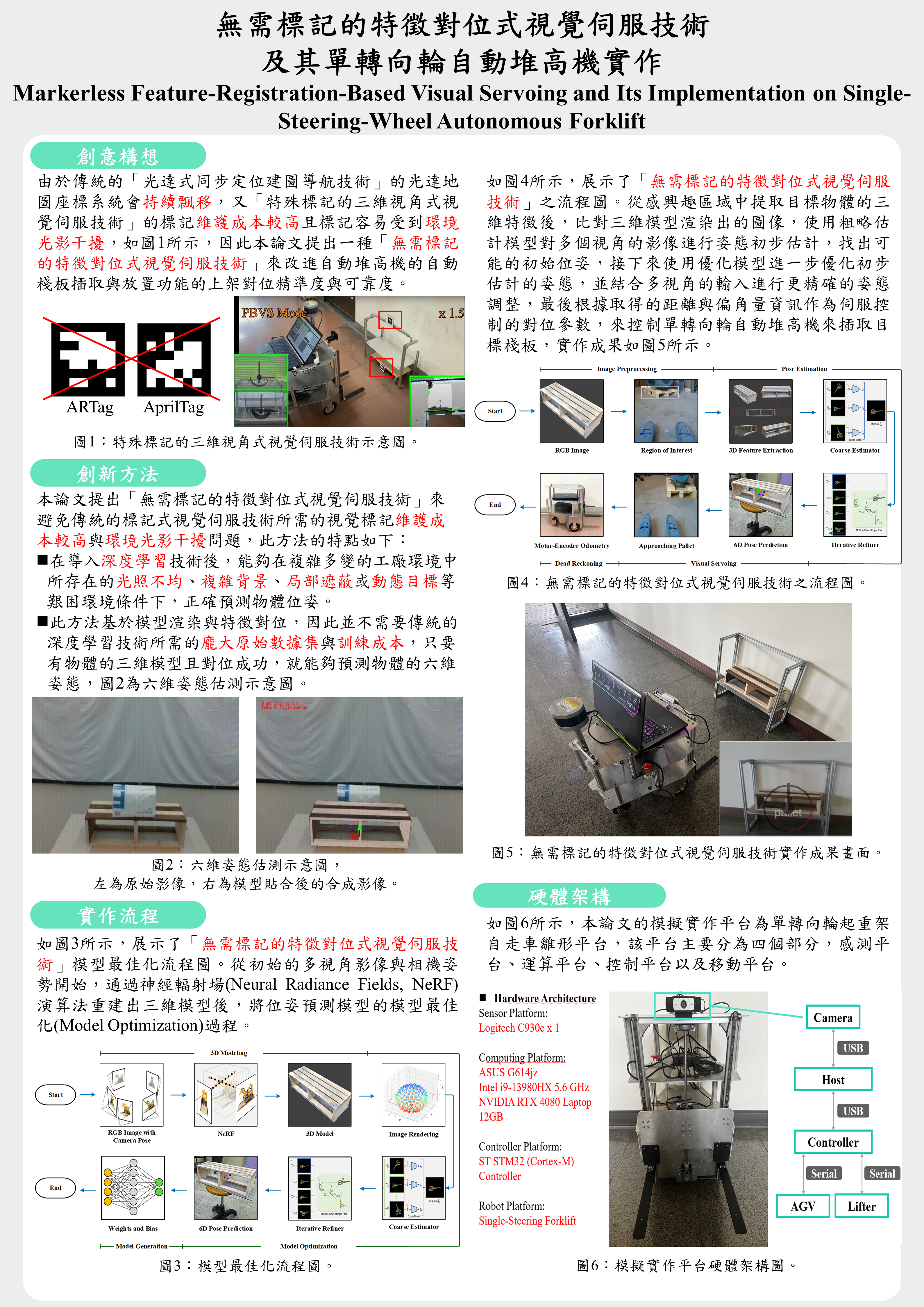 無需標記的特徵對位式視覺伺服技術及其單轉向輪自動堆高機實作 |
