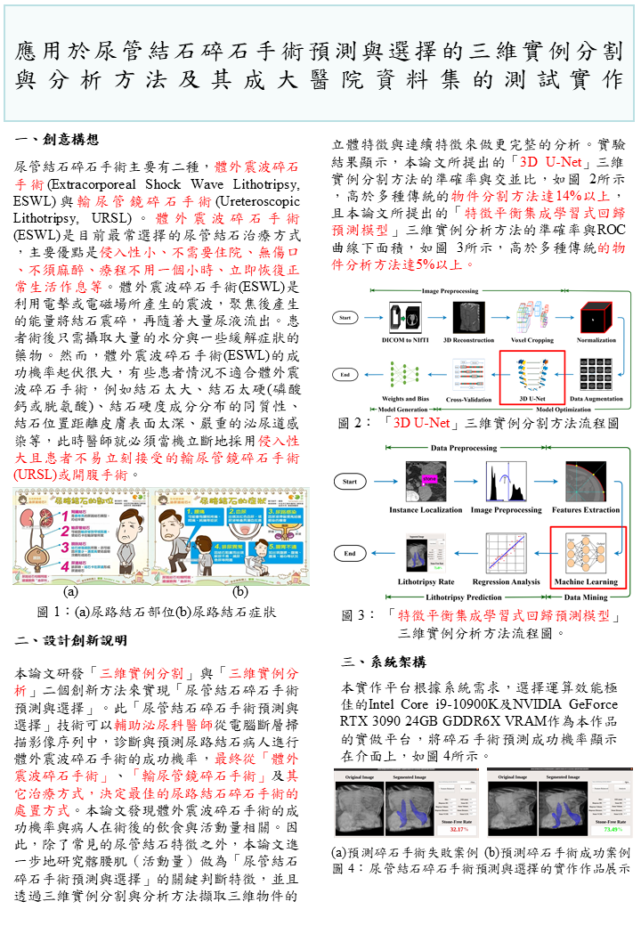 應用於尿管結石碎石手術預測與選擇的三維實例分割與分析方法及其成大醫院資料集的測試實作 |
