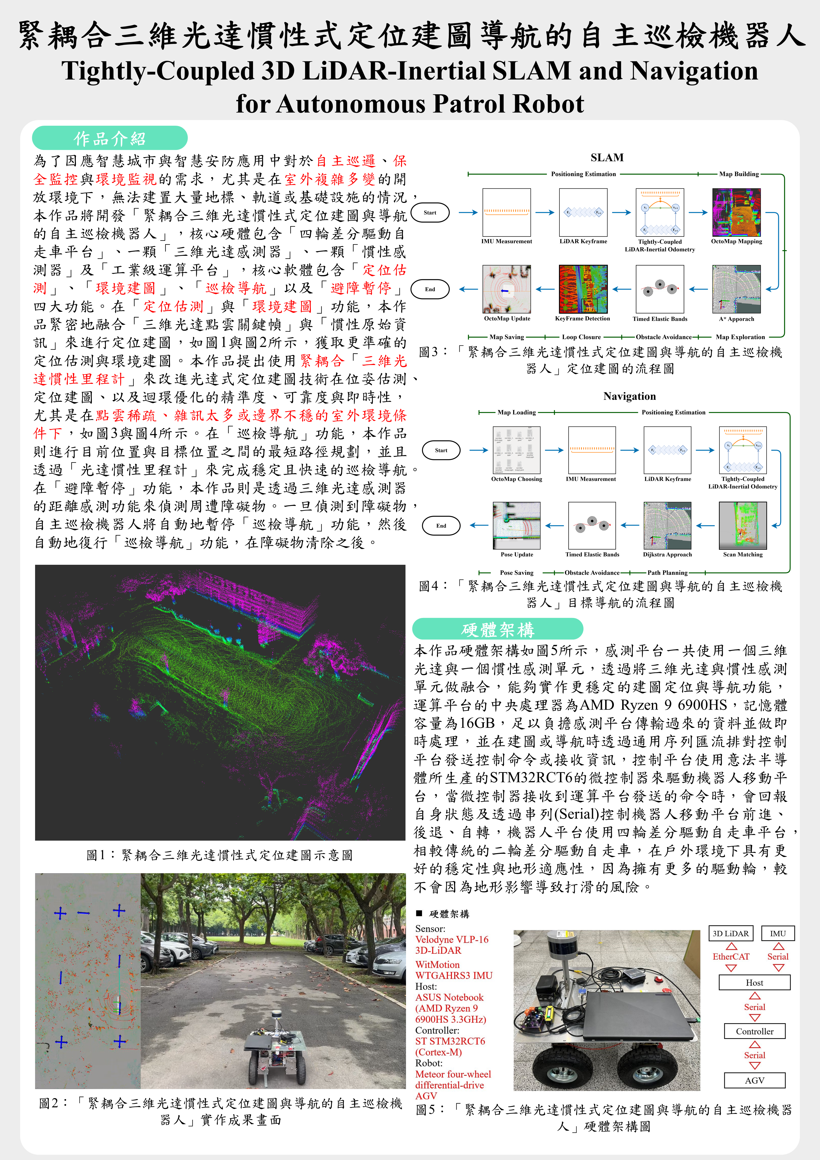 緊耦合三維光達慣性式定位建圖導航的自主巡檢機器人 |