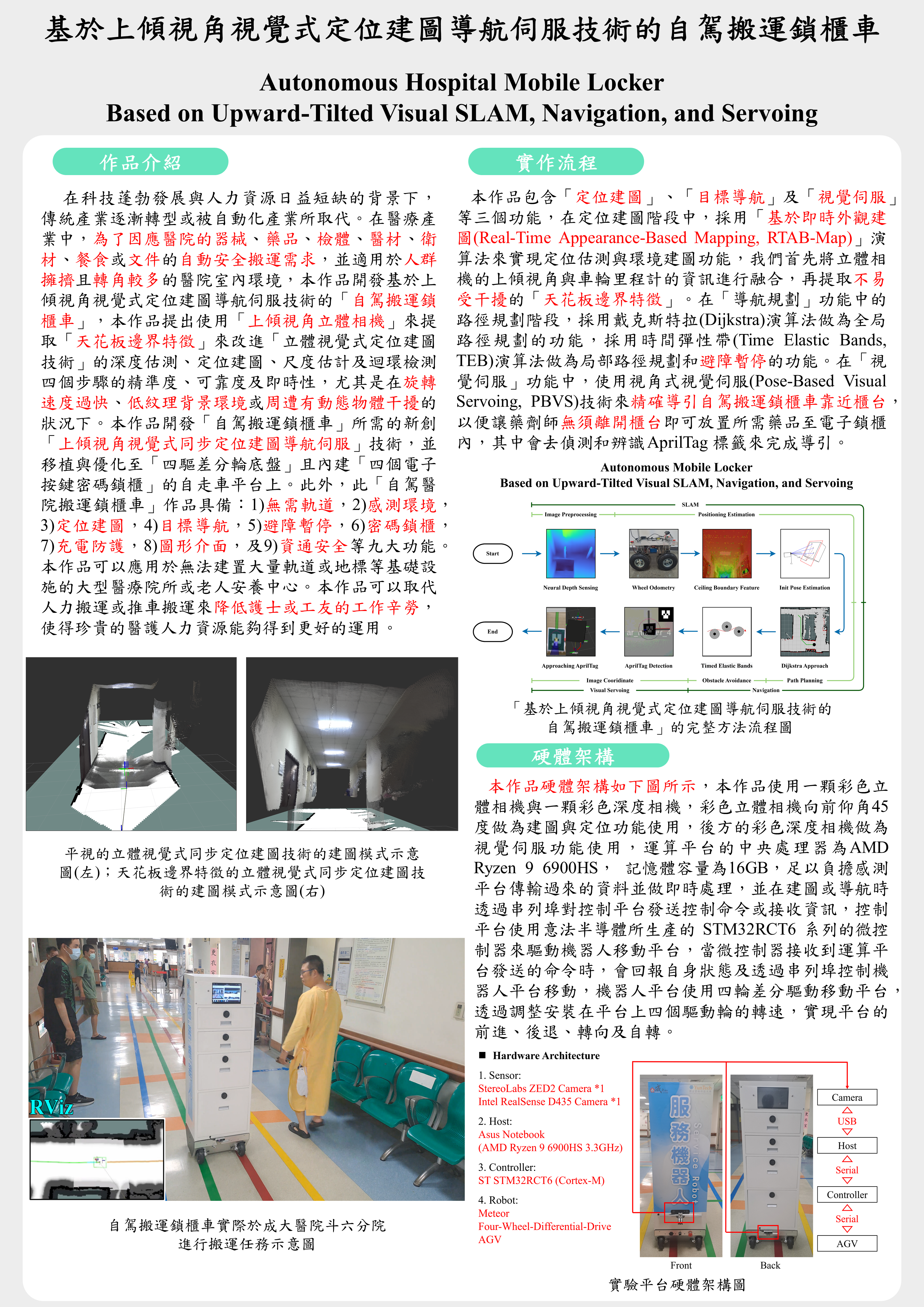 基於上傾視角視覺式定位建圖導航伺服技術的自駕搬運鎖櫃車 |