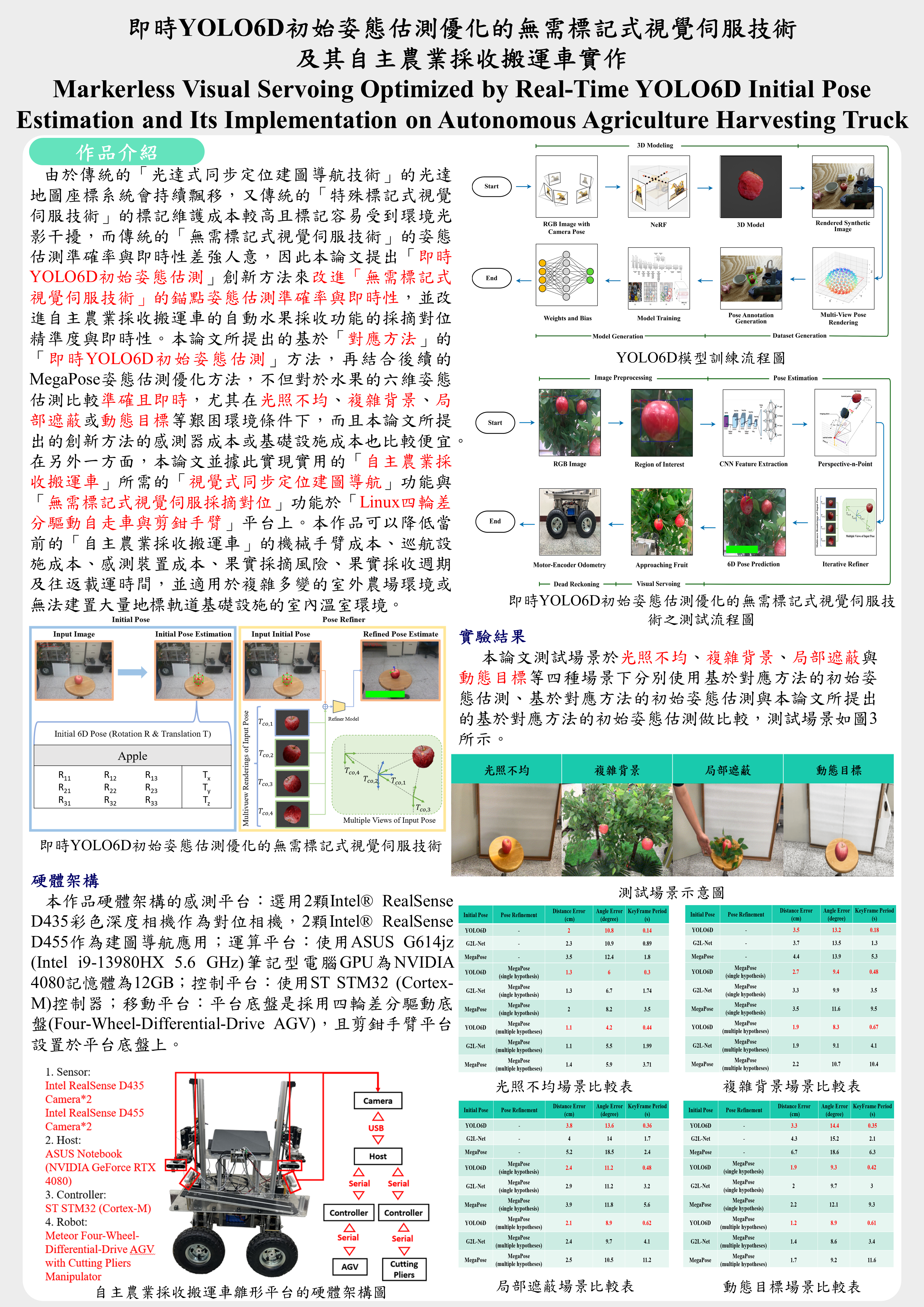 即時YOLO6D初始姿態估測優化的無需標記式視覺伺服技術及其自主農業採收搬運車實作 |
